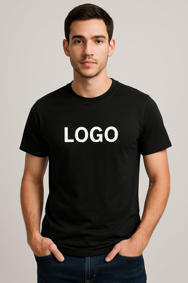 Elevate your casual style with DressUp's Premium Cotton Round Neck T-Shirt. Crafted from soft, breathable cotton, this sleek black tee combines comfort with a clean, modern silhouette. Designed for daily wear or corporate branding, it features a customizable logo on the chest, perfect for businesses, events, or personal expression.